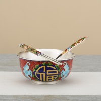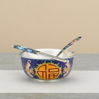 Complete Set: Includes a bowl, chopsticks, and a spoon, all adorned with matching Cloisonné art for a cohesive, meaningful experience that spans generations.
